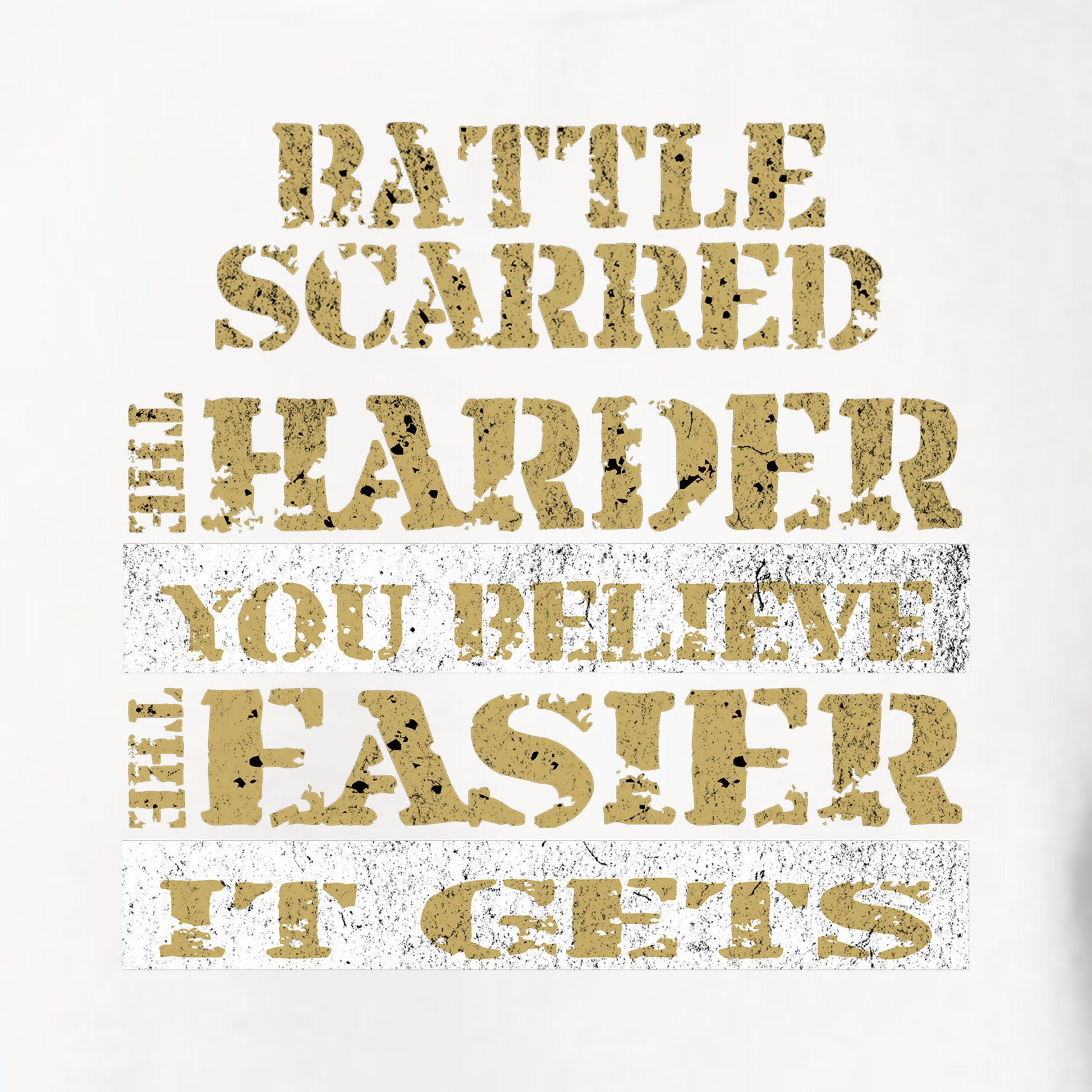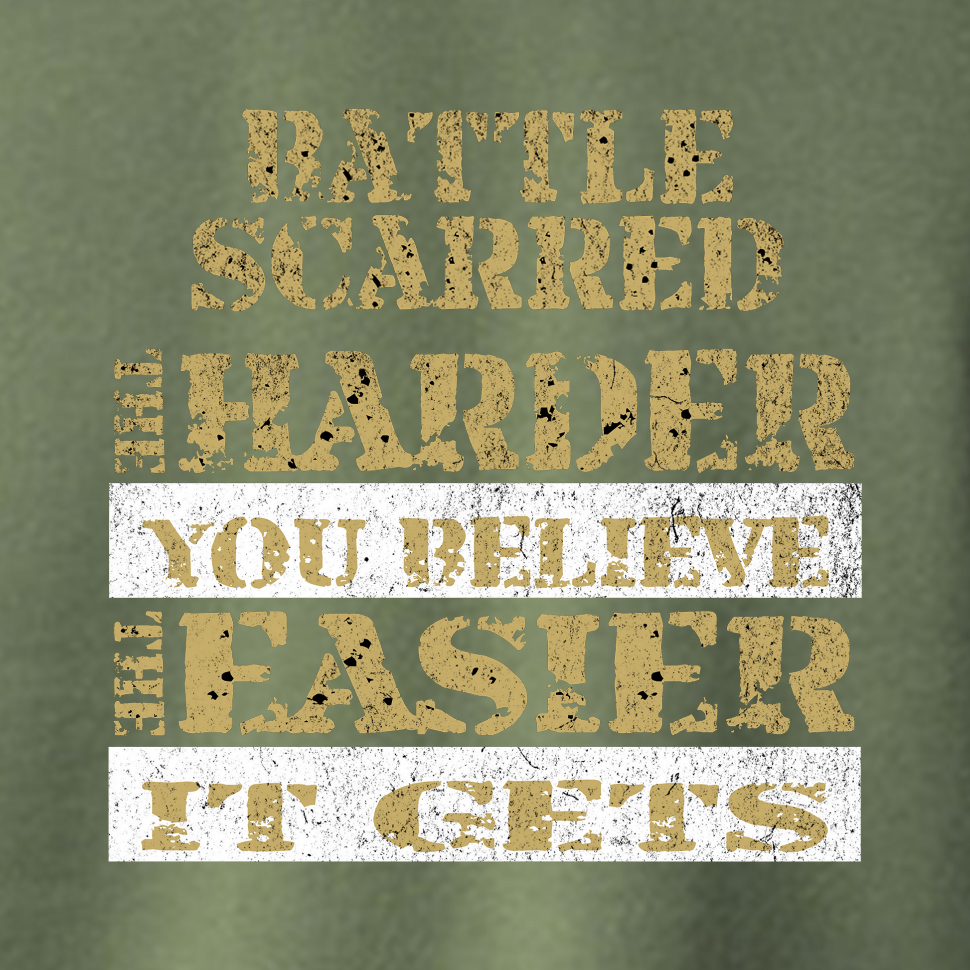 This design is for the ones clawing their way through the hardest parts of healing. With a rough military-inspired layout, the quote reminds us:
